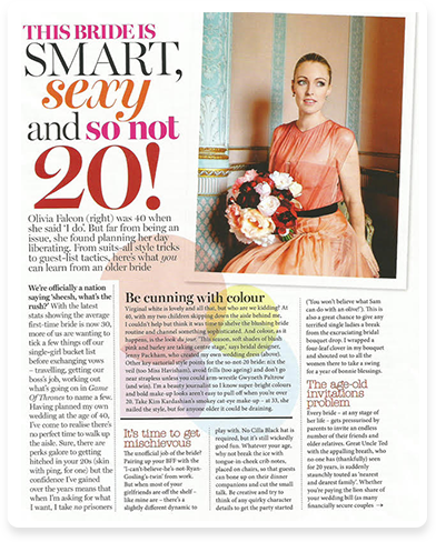 "The overriding remark from my wedding was not where I got my dress, or who did my hair, but what face cream I had been using for the last few months.... I had not used anything different, but I had found Myriam, and I am still getting comments on my 'wedding glow' eight months after the event. I will never get anyone else to do my make- up, ever! Myriam is the best beauty secret any woman can hope to find."